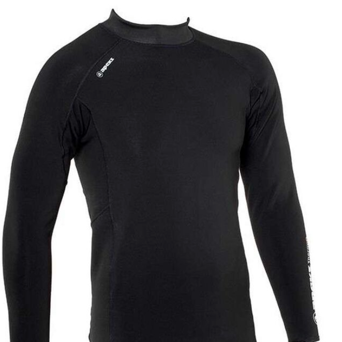 The ThermiQ Carbon Core can be worn on its own as a thermal rash guard in warm water or as an extra layer underneath a drysuit. Advanced lining is made from graphene wrapped fibres which acts as a superconductor, regulating skin temperature by transferring heat from warm spots to cold spots on the body. Breathable fabrics prevent moisture build up when used underneath a drysuit. Elasticated thumb loops keep the top in place when wearing under a drysuit.